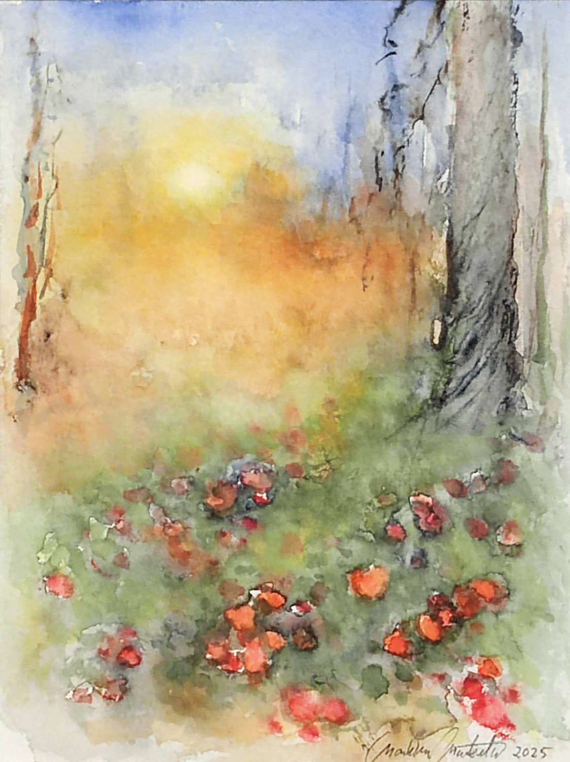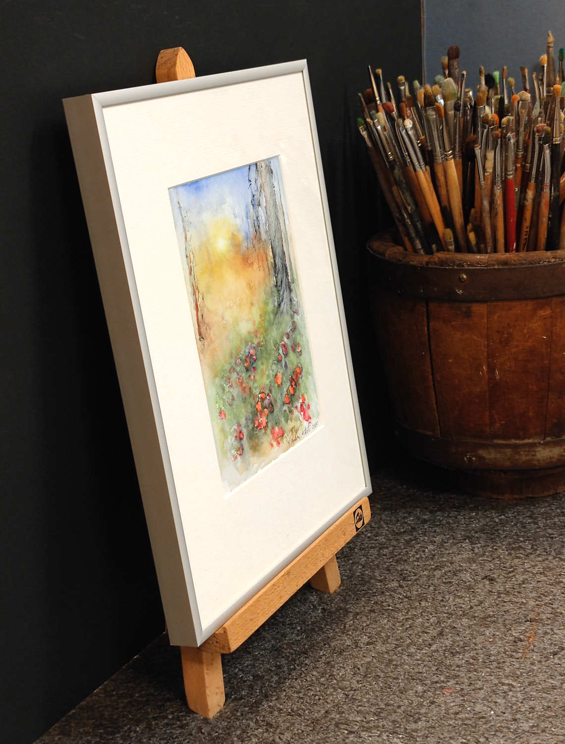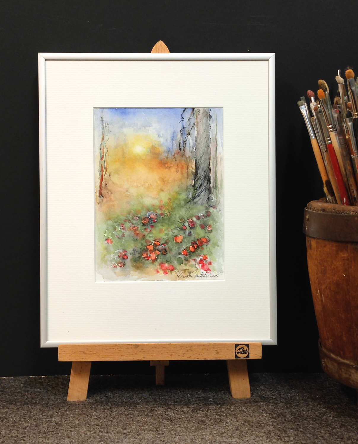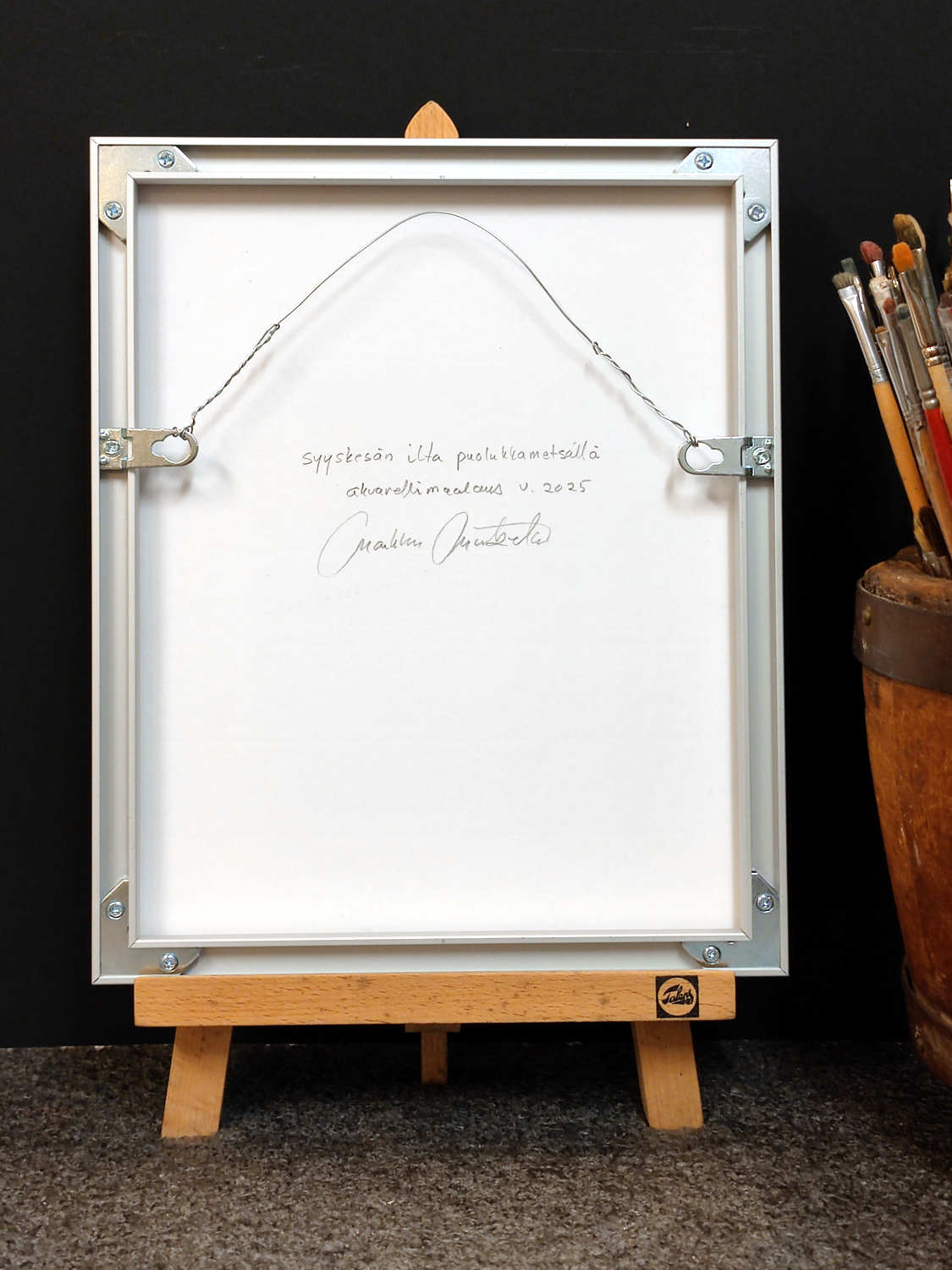 Teos on maalattu 300 g:n vahvalle akvarellipaperille, joka takaa värien syvyyden ja kestävyyden. Kehystys on tehty huolellisesti happovapailla materiaaleilla, jotka suojaavat teosta ja säilyttävät sen laadun vuosikymmeniksi.